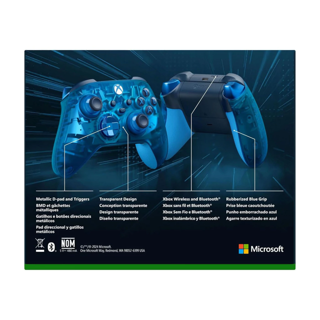 Cubierta superior azul transparente | Agarres texturizados azul cielo | Activadores y pad direccional azul celo metalizado | Tecnología Bluetooth