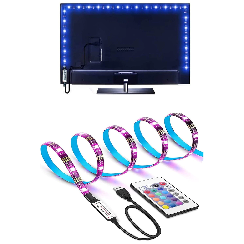El mando nos permite cambiar los colores, el brillo, al igual que diferentes modos de Luz: parpadeo, transición, transición aleatoria. El paquete incluye: 4x 50cm de tiras, 1x 24 RF mando a distancia, 3 x cables conexión (0.39ft),1 x cable conector USB