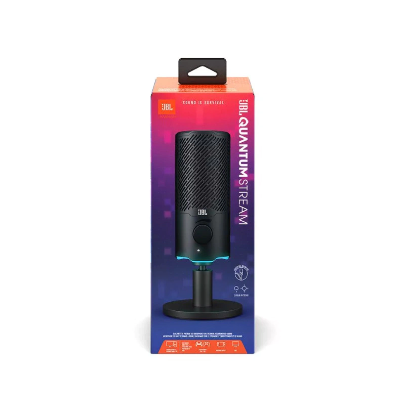 Juegos, streamings y conferencias increíbles La alta frecuencia de muestreo y el condensador doble de 14 mm del JBL Quantum Stream garantizan que tu voz se transmita siempre con un volumen alto y claro, sin ruido de fondo, o alterne entre patrones de captación cuando quieras capturar los sonidos que te rodean. ¿Necesitas descansar un momento? Silencia y activa el sonido con solo tocar un botón. Además, un indicador de timbre RGB cambiará de color, para que siempre sepas cuándo se te oye. Estés donde estés, las tres opciones de configuración y un soporte reversible te permiten montar fácilmente el micrófono para disfrutar de una comunicación sencilla y sin interrupciones.